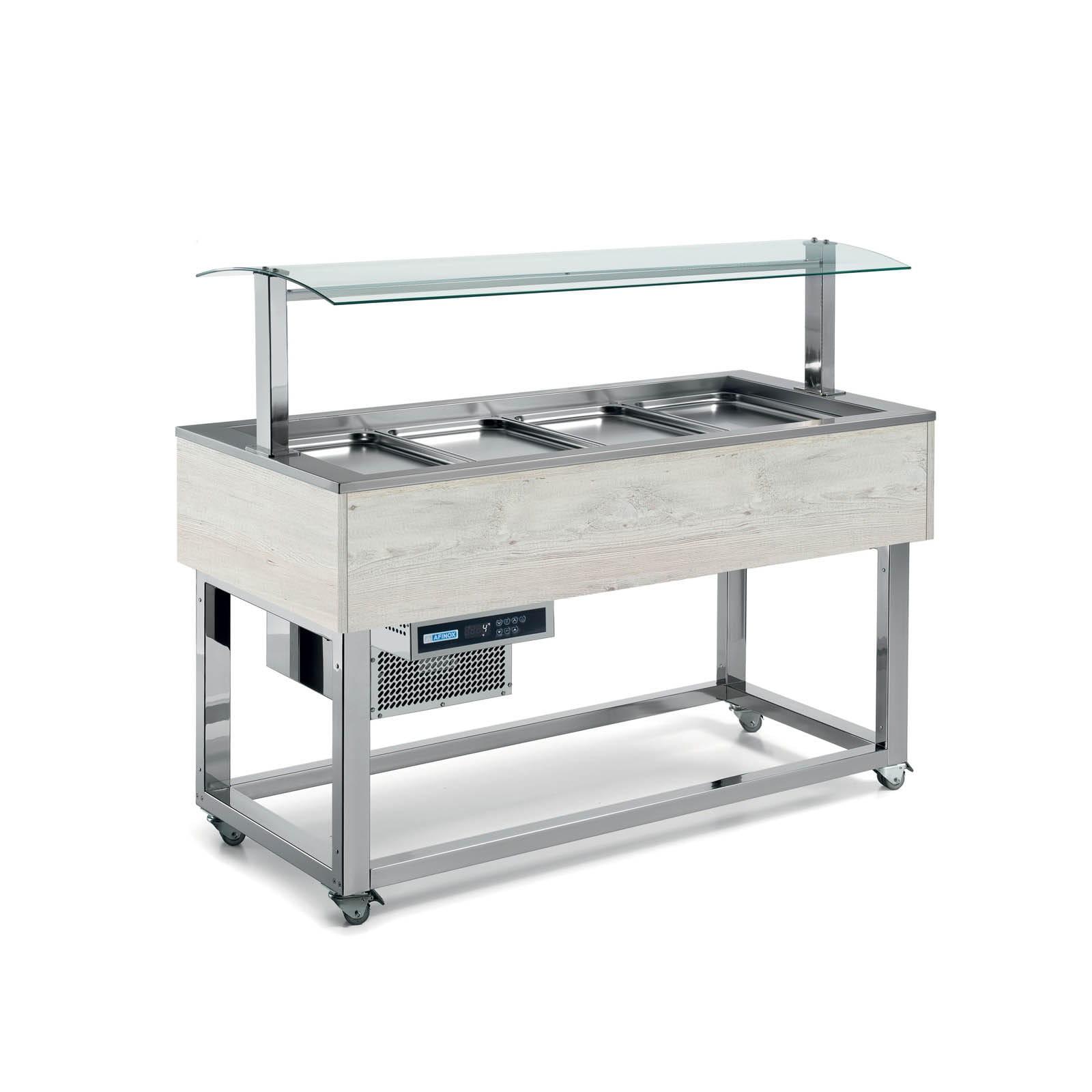 Bar sałatkowy 6xGN 1/1 200 mm z oświetleniem LED, kolor Wenge, ciąg wydawczy | Redfox 00027206