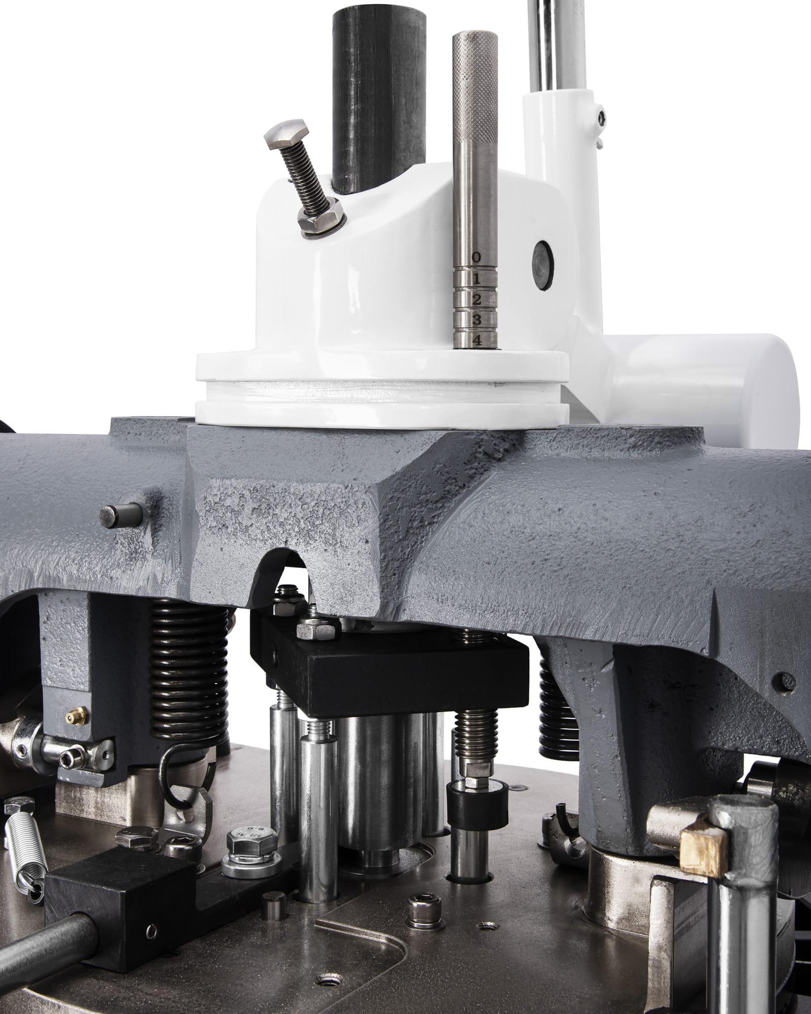 - Głowica dzieląca z ostrzami ze stali nierdzewnej tnie gotowe ciasto na równe porcje