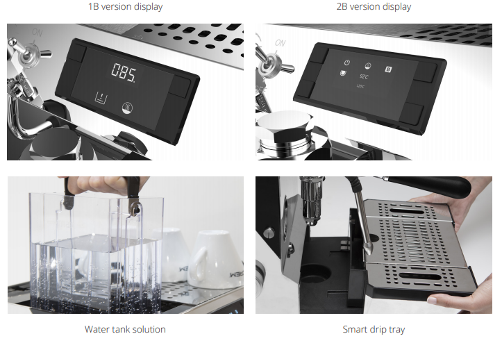 - System GSP (Gradual Soft Pre-Infusion) - możliwość regulacji wstępnego zaparzania w zakresie od 0 do 20 sekund za pomocą wyświetlacza OLED (ciśnienie wzrasta stopniowo do pożądanej wartości)