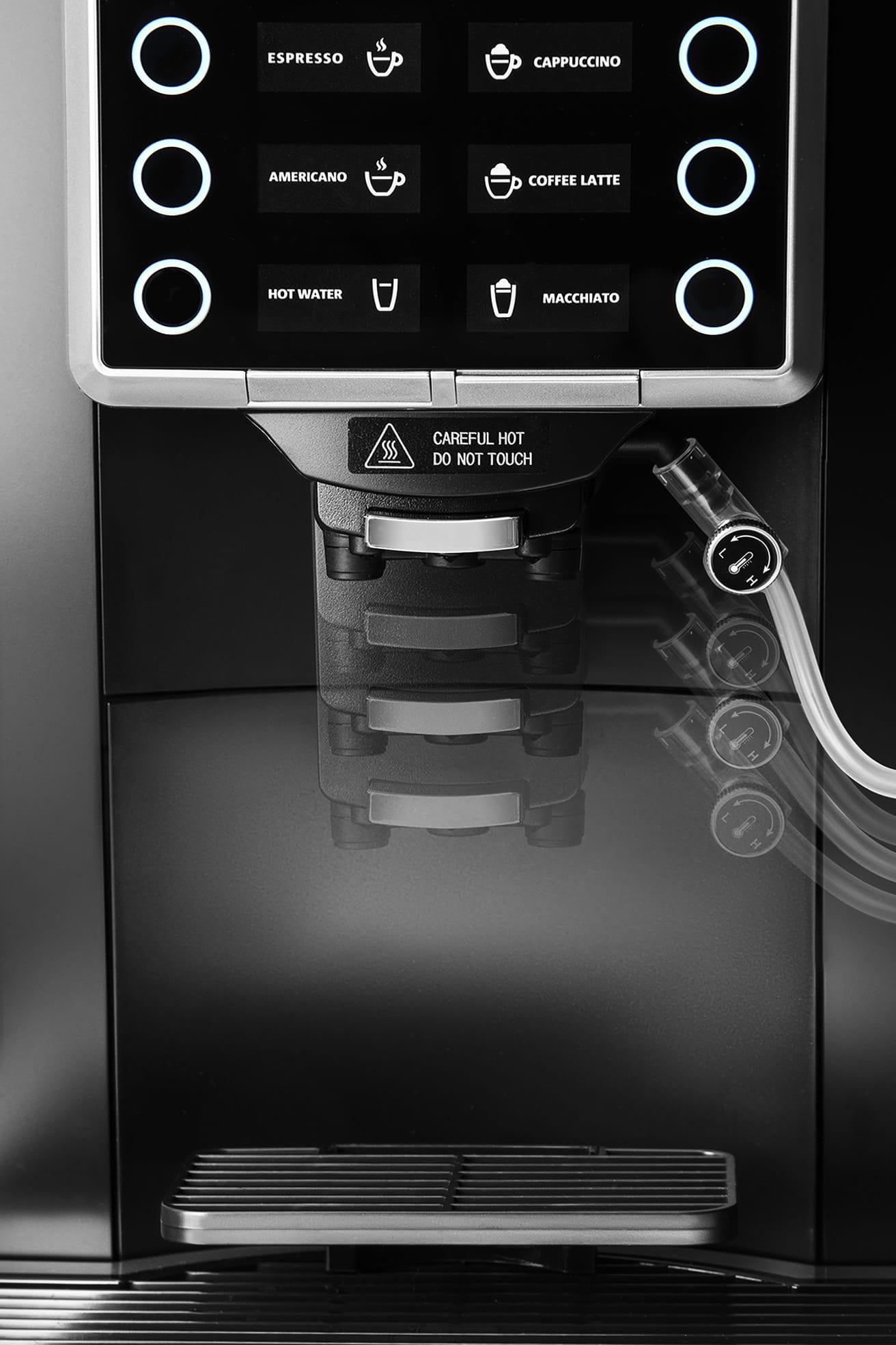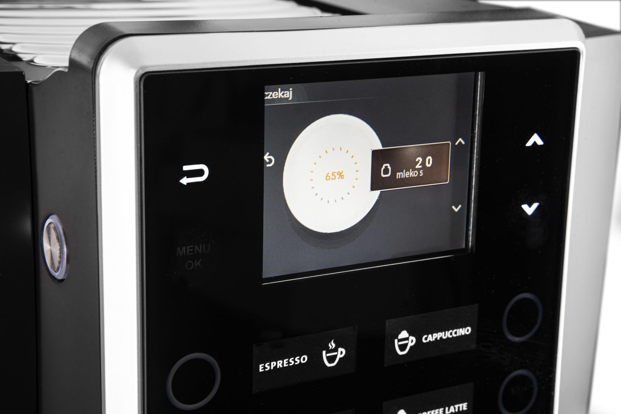 - Ekspres idealnie nadaje się do samoobsługi, dzięki intuicyjnemu panelowi sterowania