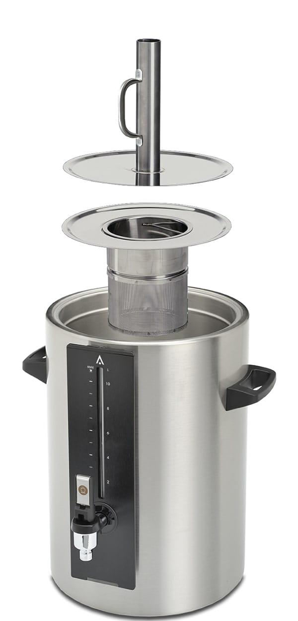 - Ekspres występujący także w różnych wersjach, pojedynczych i podwójnych, z termosami po pojemności 5, 10, 20, 40 litrów, z wylewką gorącej wody