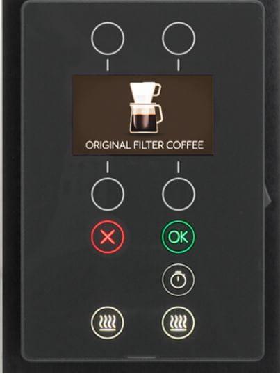 - Przyjazny w obsłudze interfejs wyświetlający wskazówki dotyczące prawidłowych ustawień dozowania kawy, w przypadku awarii informujący nas o dalszym postępowaniu i danych kontaktowych do serwisu