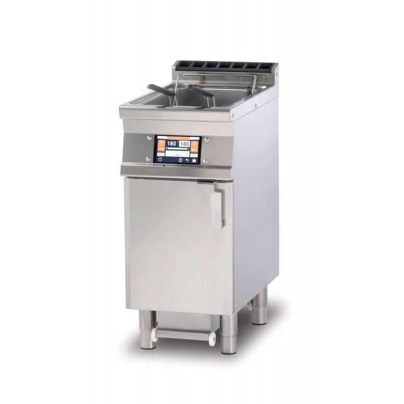 Nowoczesna jednokomorowa frytkownica po pojemności 25 l sterowana poprzez 7-calowy panel dotykowy. Idealna do pracy w dużym natężeniu ruchu. Posiada funkcję przechowywania informacji z konkretnych trybów smażenia umożliwiając ich powtarzanie, tak by otrzymywać zawsze tę samą oczekiwaną jakość (100 różnych programów). Dodatkowo ma funkcję automatycznego filtrowania gorącego oleju i czyszczenia zbiornika oraz zintegrowane podnośniki do koszy. To funkcjonalne i wydajne urządzenie, które smaży 35 kg frytek na godzinę.