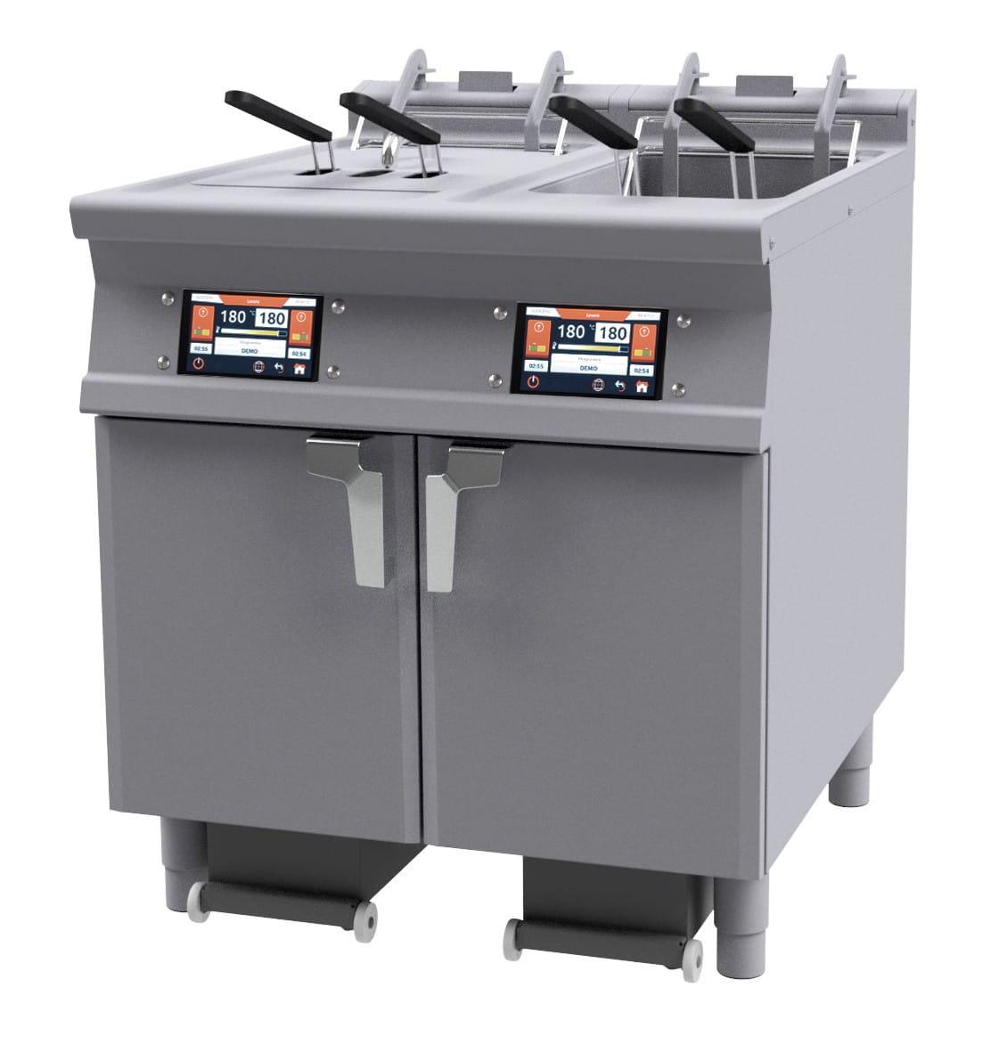 Nowoczesna dwukomorowa frytkownica po pojemności 2x25 l sterowana poprzez 7-calowy panel dotykowy. Idealna do pracy w dużym natężeniu ruchu. Posiada funkcję przechowywania informacji z konkretnych trybów smażenia umożliwiając ich powtarzanie, tak by otrzymywać zawsze tę samą oczekiwaną jakość (100 różnych programów). Dodatkowo ma funkcję automatycznego filtrowania gorącego oleju i czyszczenia zbiornika. To funkcjonalne i wydajne urządzenie, które smaży 70 kg frytek na godzinę.
