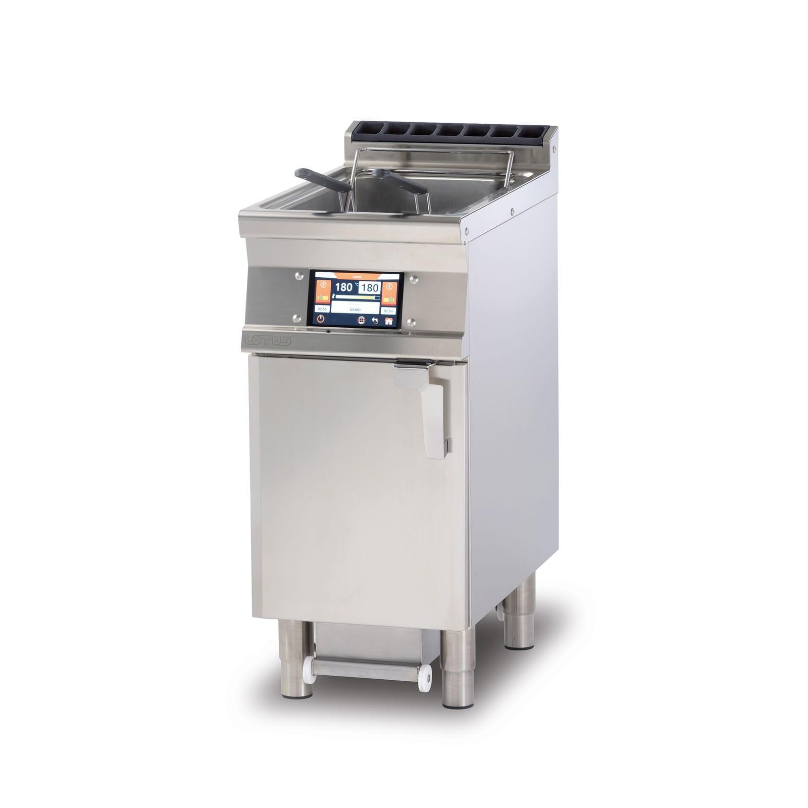Nowoczesna jednokomorowa frytkownica po pojemności 18 l sterowana poprzez 7-calowy panel dotykowy. Idealna do pracy w dużym natężeniu ruchu. Posiada funkcję przechowywania informacji z konkretnych trybów smażenia (do 100 różnych programów) umożliwiając ich powtarzanie, tak by otrzymywać zawsze tę samą oczekiwaną jakość. To wydajne urządzenie, które smaży 27 kg frytek na godzinę.