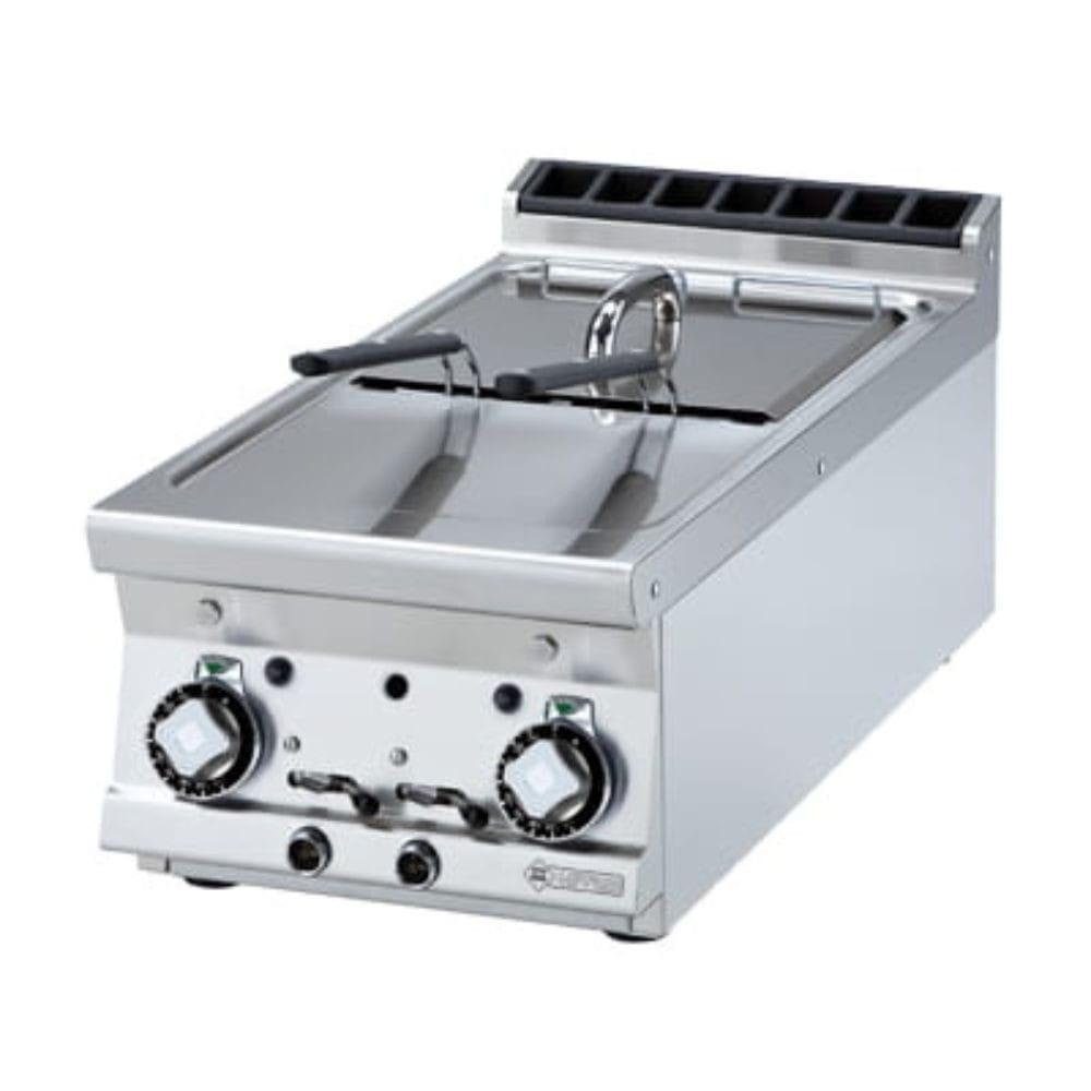 Dwukomorowa nastawna frytownica gazowa marki RM Gastro o pojemności 2x8 l została zaprojektowana została z myślą o małych i średnich lokalach gastronomicznych. To wydaje urządzenie, które smaży 12 kg frytek na godzinę.