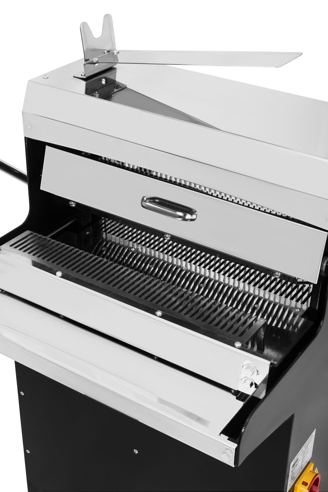- Możliwość krojenia twardych, ale także miękkich chlebów o różnych wysokościach dzięki specjalnej regulacji docisku