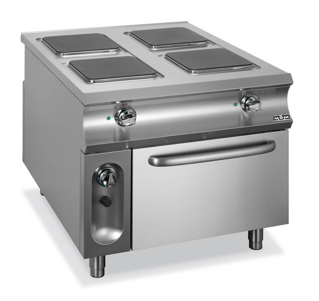 Linia kuchni elektrycznych obejmuje modele z 2 lub 4 płytami kwadratowymi dostępne jako monobloki (urządzenia wolnostojące). Monoblok: na podstawie z 3 stron zamkniętej lub ze statycznym piekarnikiem elektrycznym GN 2/1. Wyposażenie: • Blat ze stali nierdzewnej AISI 304 18/10 o grubości 2 mm • Szybko nagrzewające się żeliwne płyty grzejne z zabezpieczeniem przed przegrzaniem (300x300 mm) • Elementy grzejne o mocy 3 kW lub 4 kW z 7-pozycyjnym termostatem zapewniającym optymalne sterowanie mocą • Wodoszczelne mocowanie płyt grzejnych do blatu kuchni Prosta obsługa: • Sterowanie z dwóch stron • Lampki kontrolne wskazujące działanie każdej płyty • Nowoczesne, ergonomiczne pokrętła w górnej części panelu przedniego • Łatwość montażu wszystkich elementów z przodu Konserwacja: • Zaokrąglone narożniki oraz formowane wgłębienia pozwalają na gromadzenie się cieczy, zapobiegają jej wypływowi i ułatwiają mycie * gwarancja zgodnie z warunkami producenta