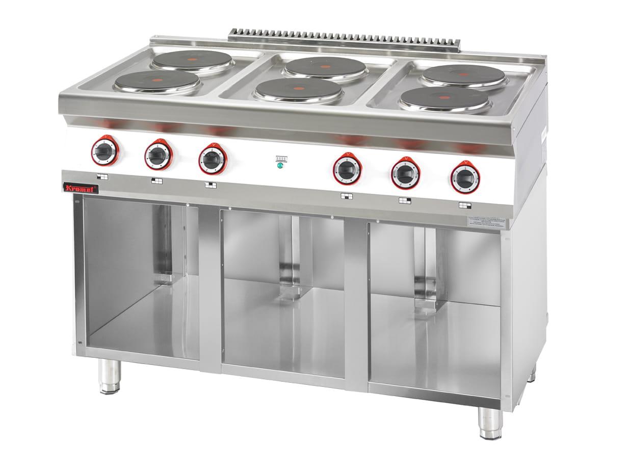 Kuchnia elektryczna 6 płyty okrągłych 6x2,6kW na podstawie szafkowej otwartej | Kromet 700.KE-6.S