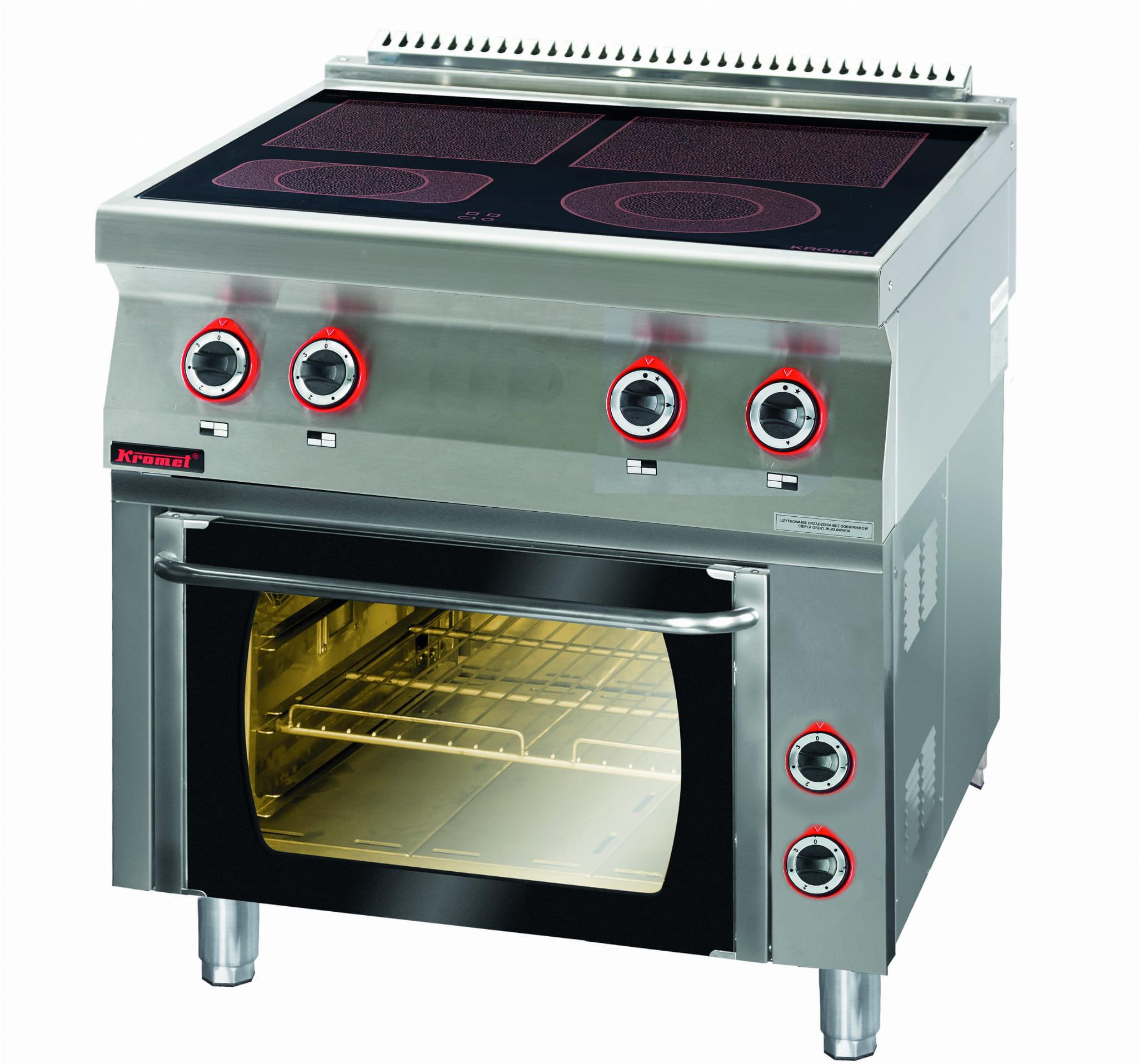 Kuchnia elektryczna ceramiczna z piekarnikiem elektrycznym 2x4kW + 1x2,1kW + 1x2,0kW + 3,5kW (piekarnik) | Kromet 700.KE-4C/PE-1
