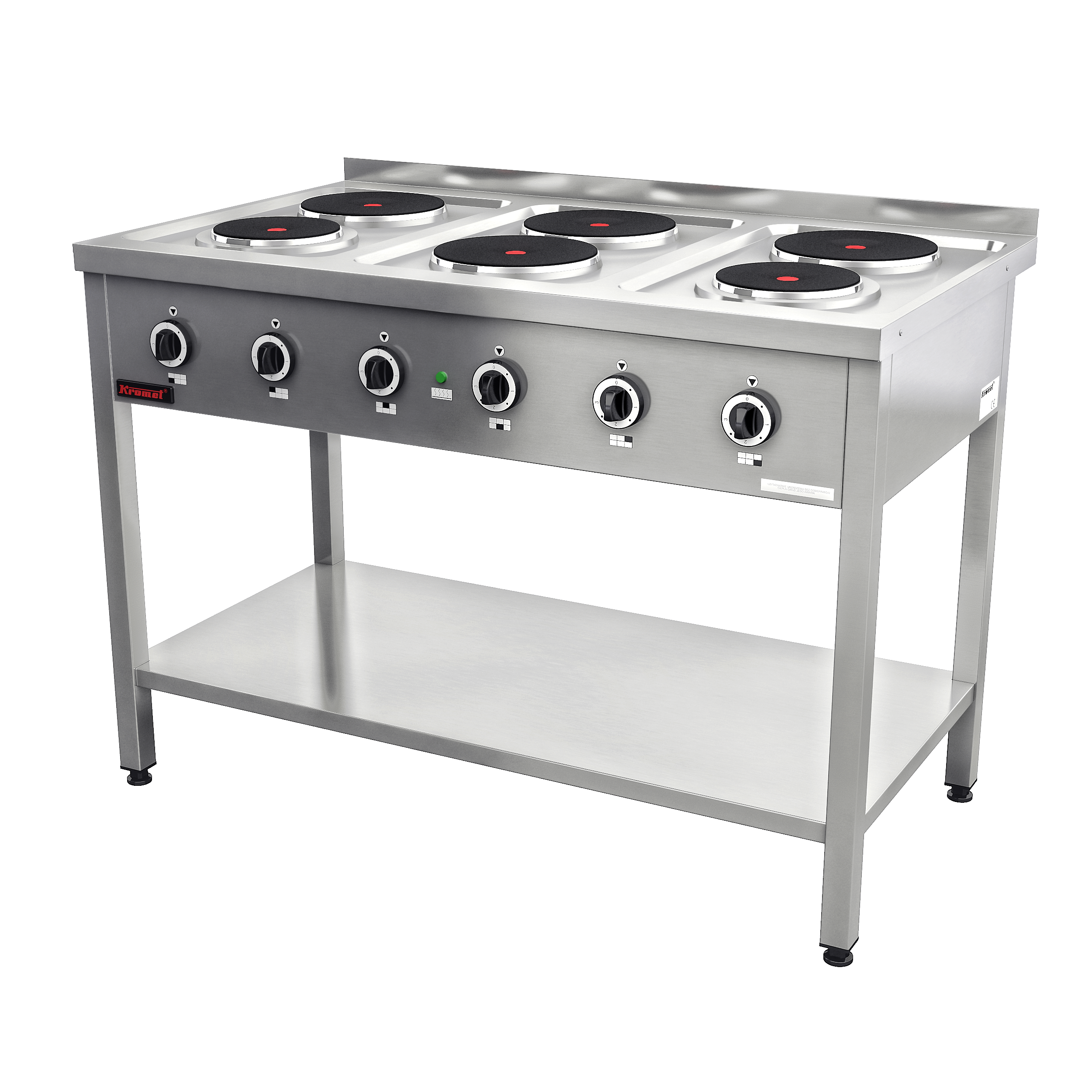 Kuchnia elektryczna na podstawie otwartej 6-płytowa 4x2,6kW + 2x2,0kW | Kromet 000.KE-6M
