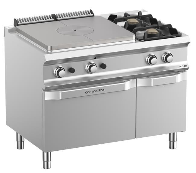 Kuchnia gazowa 2 - palnikowa z dużą płytą grzewczą, piekarnikiem gazowym i szafką DominaPro 700 | Hendi TPG711FG2XL