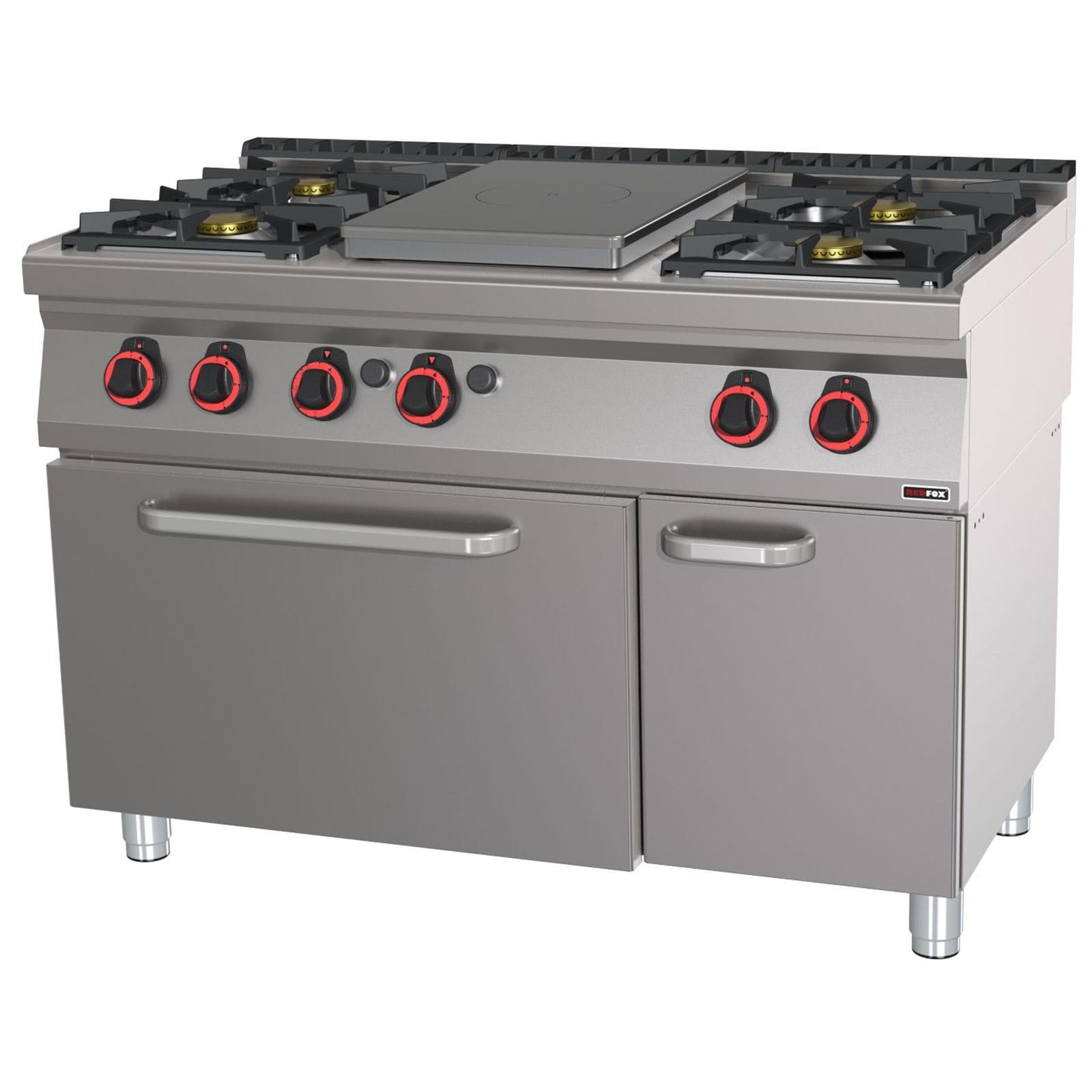 Kuchnia Redfox to model wolnostojący, który można dopasować do innych urządzeń z linii Redfox 700. Jej konstrukcja wykonana jest ze stali nierdzewnej - kuchnia jest solidna, odporna na korozję i łatwa do utrzymania w czystości. Posiada tłoczoną wannę pod palnikami, solidne żeliwne ruszty i specjalne nowoczesne palniki gazowe, w tym jeden ze specjalną mosiężną, jednorzędową nakładką. Umieszczona jest na podstawie z piekarnikiem gazowym statycznym o pojemności GN 2/1.