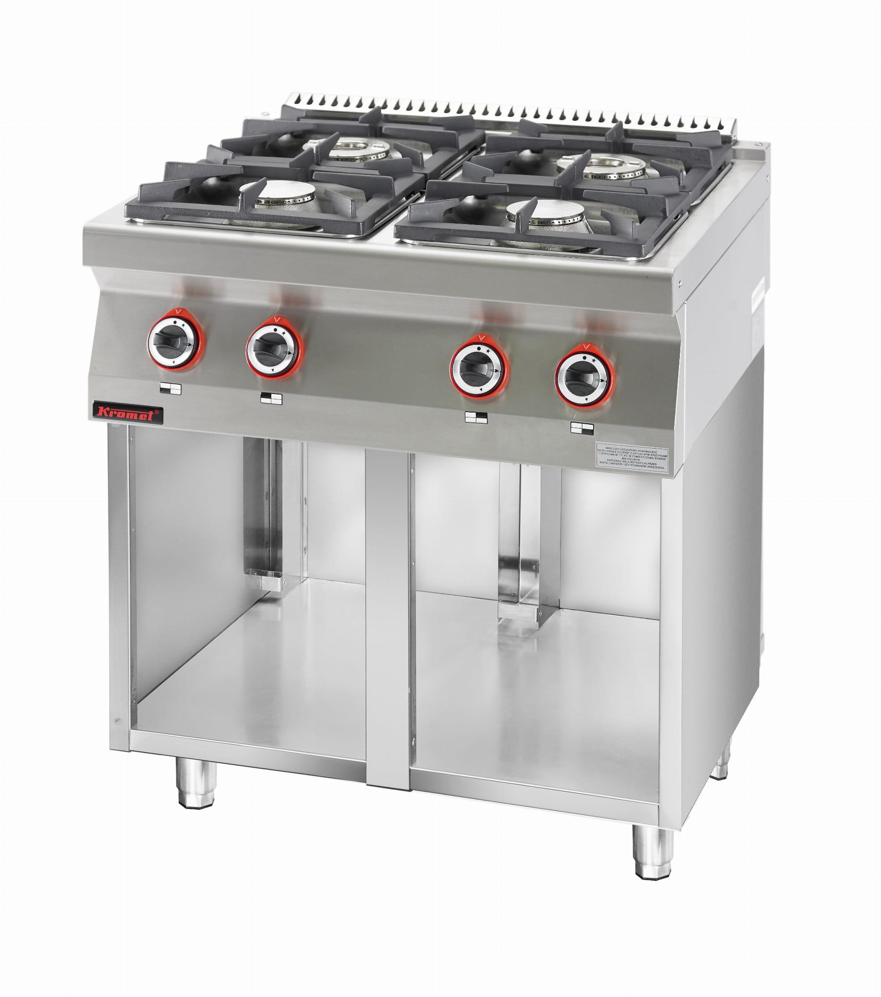 Kuchnia gazowa 4 - palnikowa na podstawie szafkowej otwartej | Kromet 700.KG-4.S