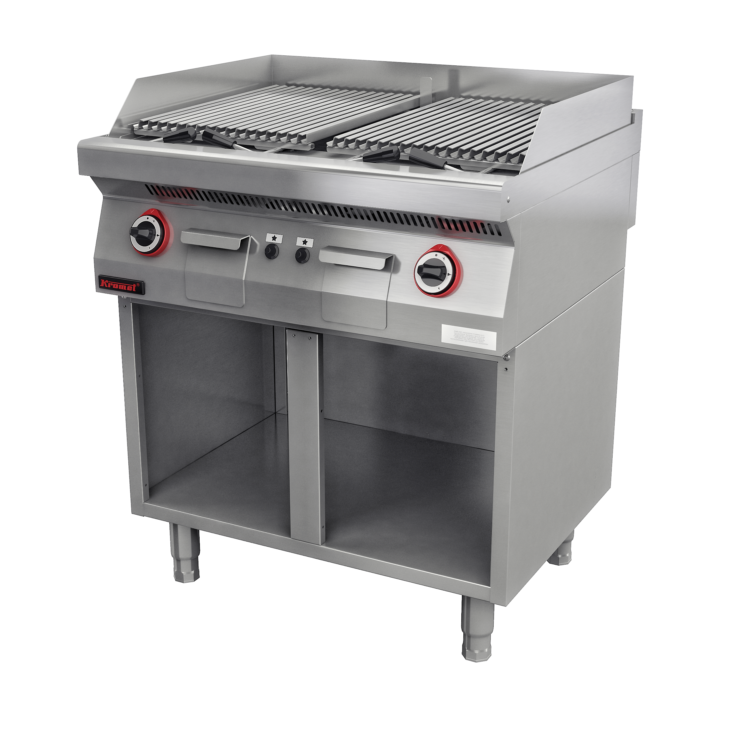 Lawa grill 800 mm 14kW na podstawie szafkowej otwartej | Kromet 700.OGL-800.S