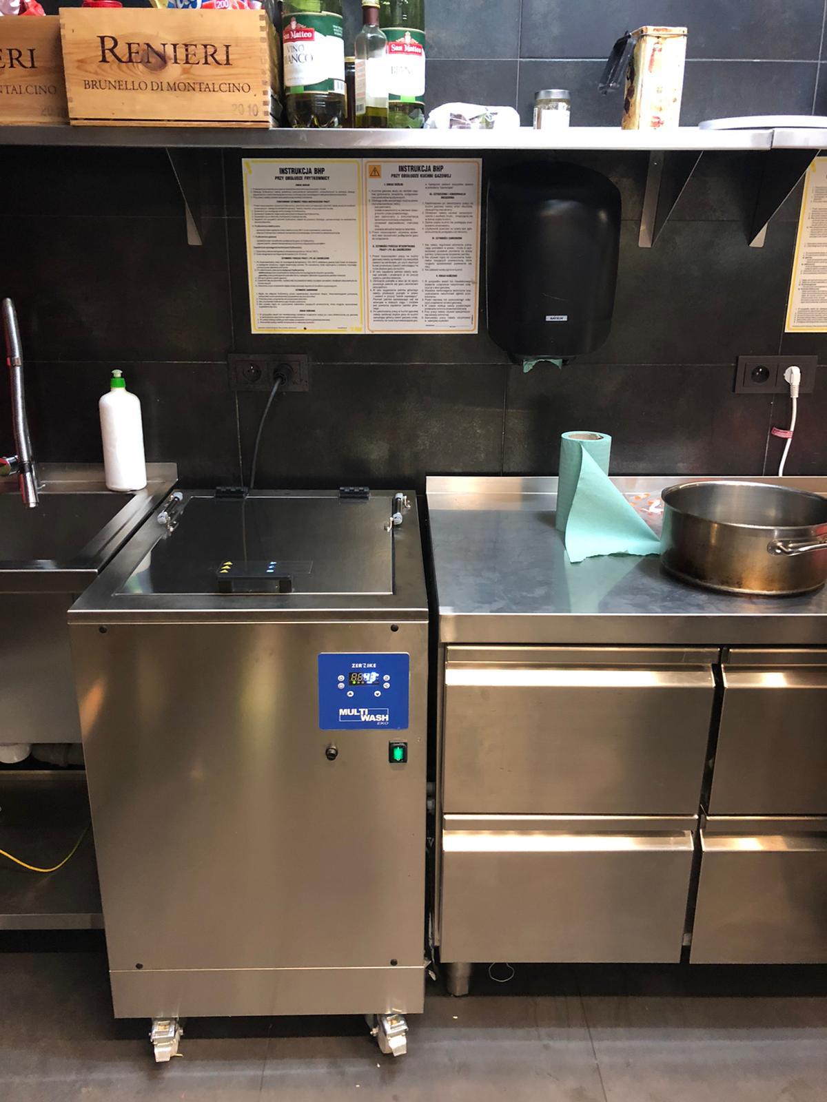 - Multi Wash od Zernike doskonale myje takie naczynia jak garnki, pojemniki GN, patelnie i wszelkie przybory kuchenne o wysokim stopniu zabrudzenia przy bardzo niskim zużyciu prądu i energii