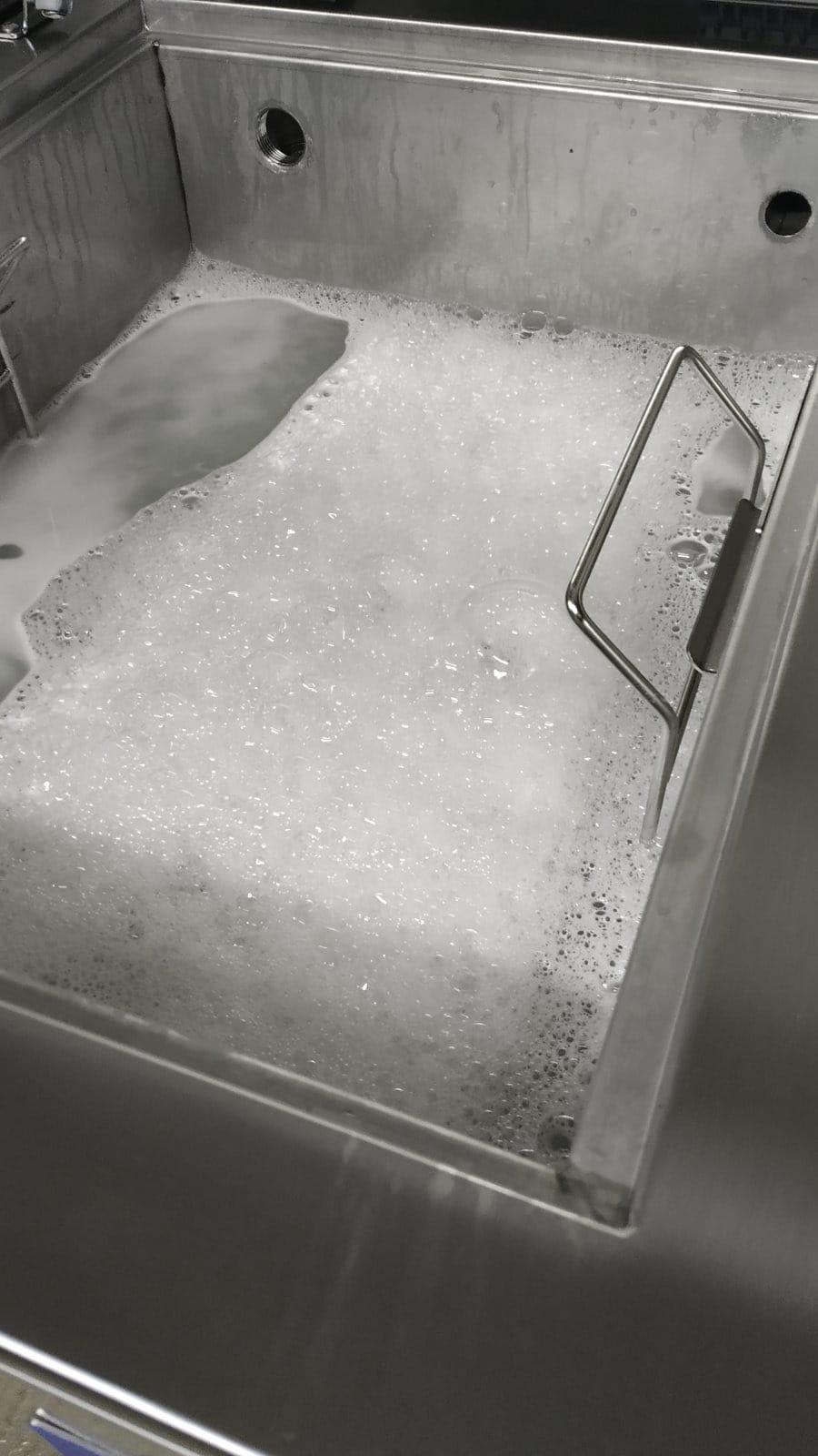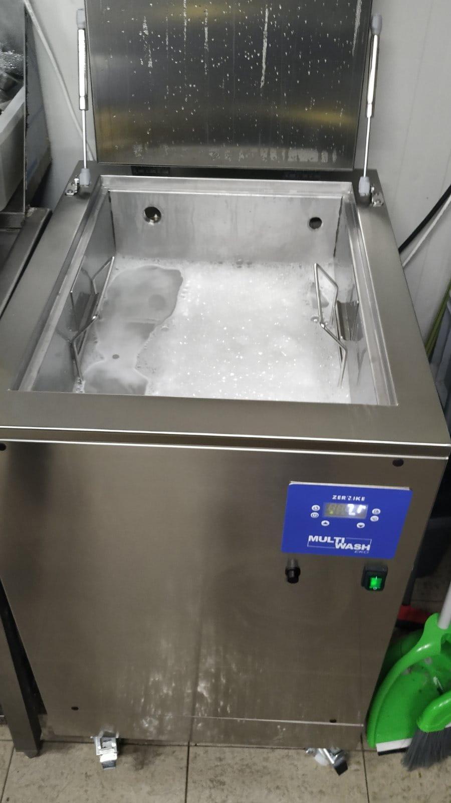 - W fazie mycia, zanieczyszczone rzeczy są całkowicie zanurzone w detergencie, który dociera do każdej szczeliny, usuwając brud i odkamieniając całą powierzchnię przedmiotu. W ten sposób można również umyć filtry do okapu, stojaki, kosze frytkownic i wszystko to, czego zwykle nie da się umyć tradycyjnymi maszynami