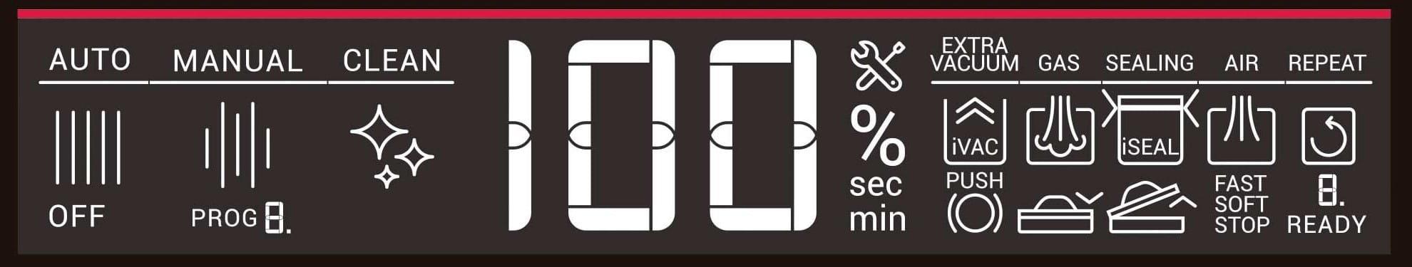 Wygodne sterowanie za pomocą ergonomicznego pokrętła, podświetlanego ekranu LCD i dwoma trybami pracy. W trybie automatycznym wystarczy włożyć worek i opuścić pokrywę, aby pakowarka wykonała całą pracę za nas. Tryb ręczny pozwala na zaprogramowanie 10 różnych programów, zależnie od potrzeb i technik kulinarnych. Wszystkie parametry są wyświetlane na ekranie.