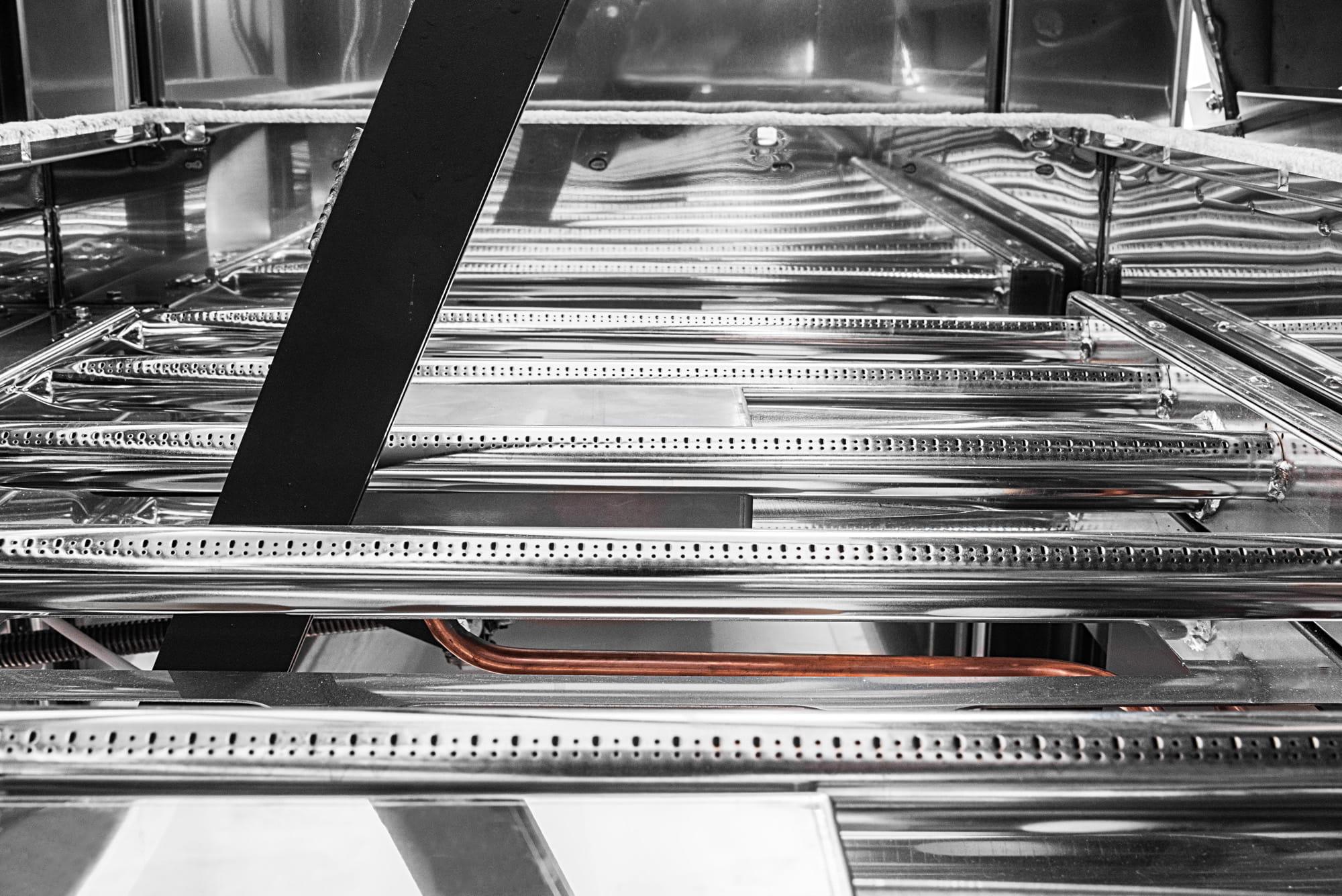 - Patelnia jest bezpośrednio ogrzewana za pomocą elementów grzejnych ze stali nierdzewnej, znajdujących się poniżej dna wanny