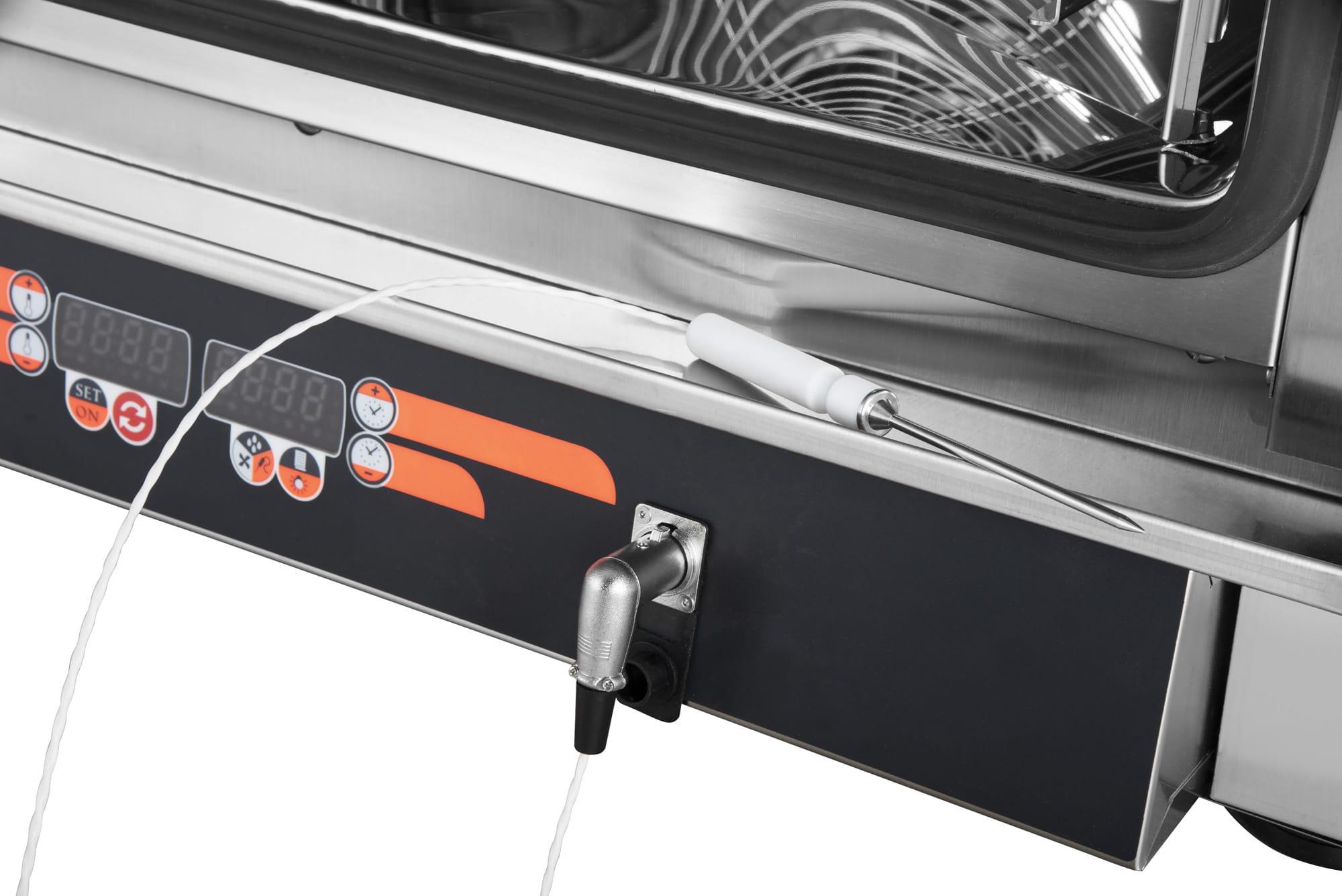 - Sonda pomiarowa umożliwia kontrolowanie temperatury pieczonych potraw, dzięki czemu mamy pewność, że przygotowywane mięsa będą idealne.