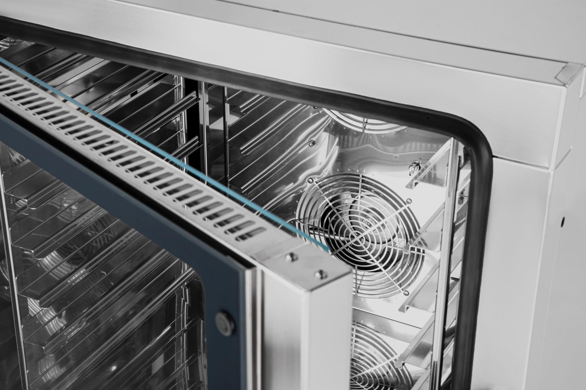 - dzięki odpowiednio wyprofilowanym łopatkom wentylatora z autorewersem przepływ powietrza jest optymalny i zapewnia równomierny rozkład temperatur w komorze