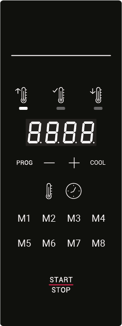 Panel sterowania z przyciskami szybkiego dostępu. Wystarczy skonfigurować i zapisać swoje ulubione lub najczęściej używane przepisy.