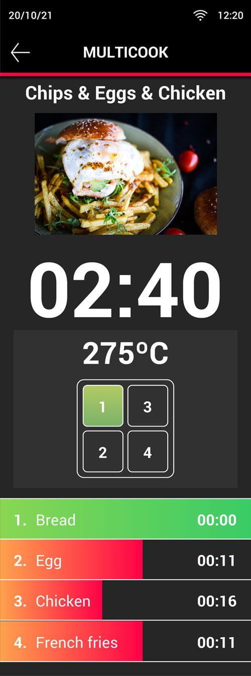 - Skróć czas oczekiwania na takie dania jak hamburger z frytkami, dzięki funkcji gotowania różnych potraw w jednym czasie!