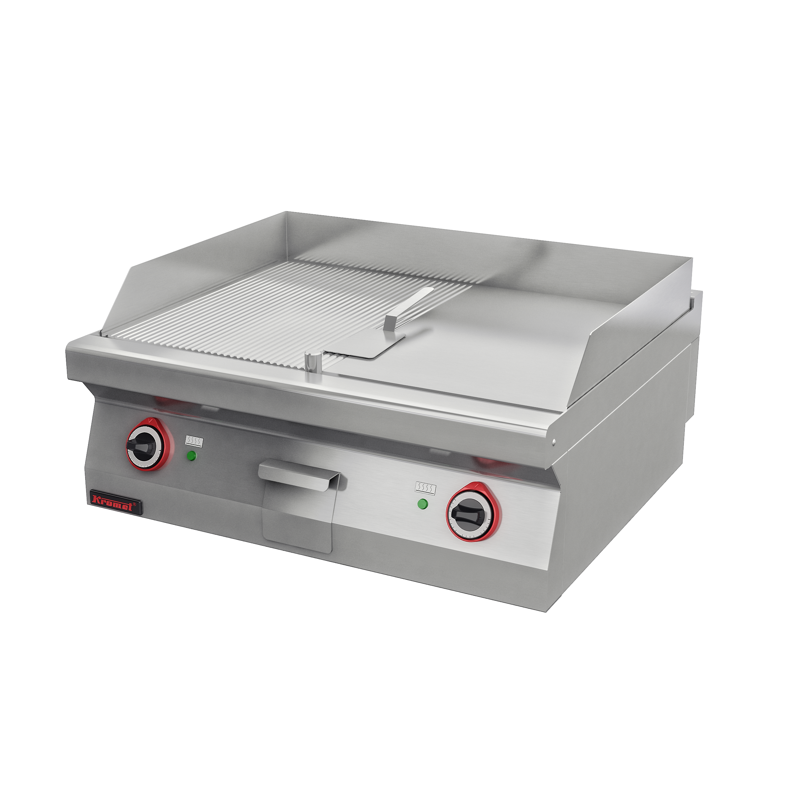 Płyta grillowa 1/2gł. + 1/2ryf. chromowana 800 mm 9,6kW | Kromet 700.PBE-800GR