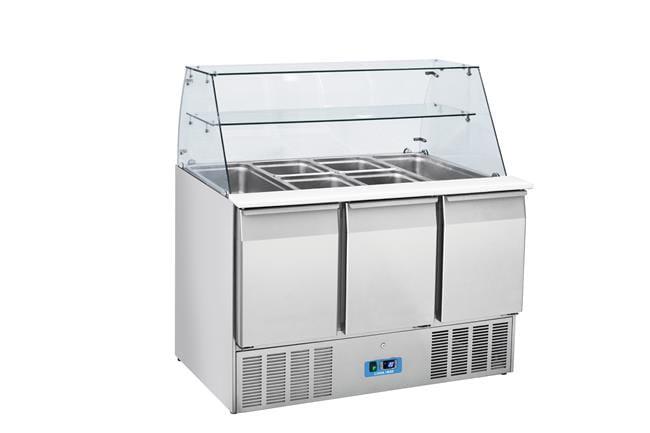 Stół chłodniczy sałatkowy Coolhead 3 drzwiowy, 4 x GN1/1, z nadstawką szklaną | Hendi CRQ 93A