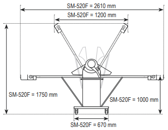 - Wymiary zewnętrzne po podniesieniu ramion [mm]: 1200x1030x1750