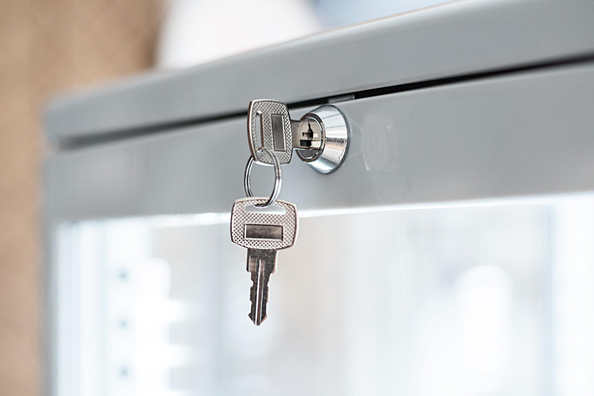 - Wyposażona w wbudowany zamek z kluczem