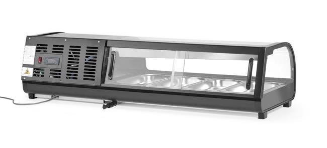 Witryna chłodnicza do sushi, Arktic, W zestawie pojemniki: 4x GN 1/3 (H) 40 mm., GN 1/3, czarny, 220-240V/190W, 1177x426x(H)296mm Wariant podstawowy 274071