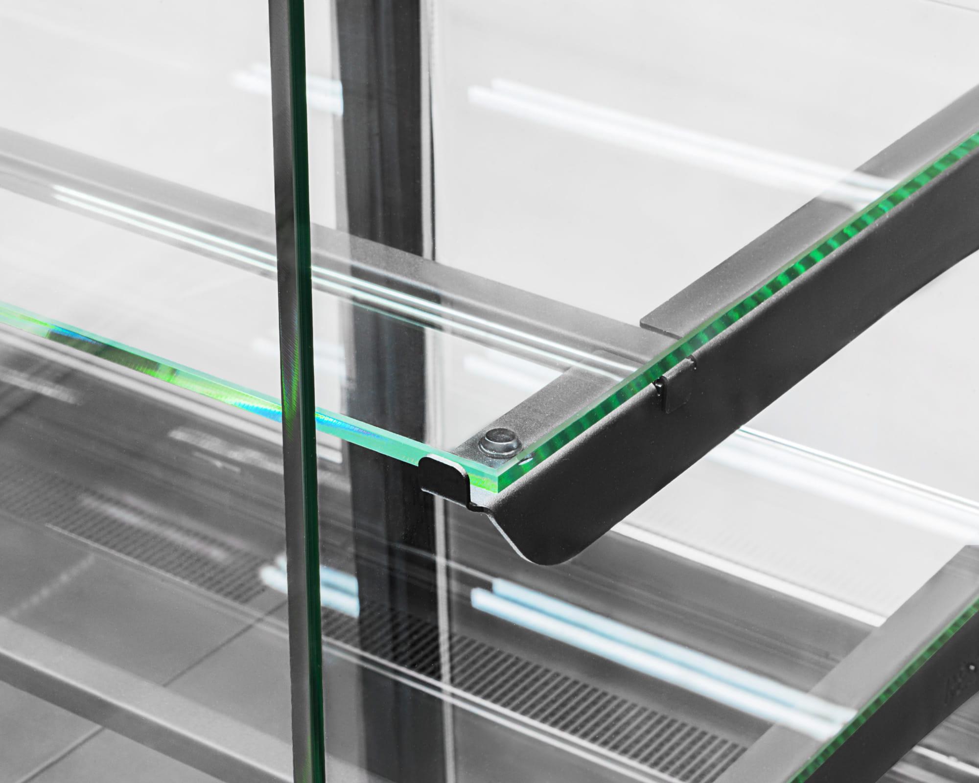 - Specjalnie zaprojektowana konstrukcja gwarantująca maksymalną widoczność produktów - bez spoin, czy sitodruku