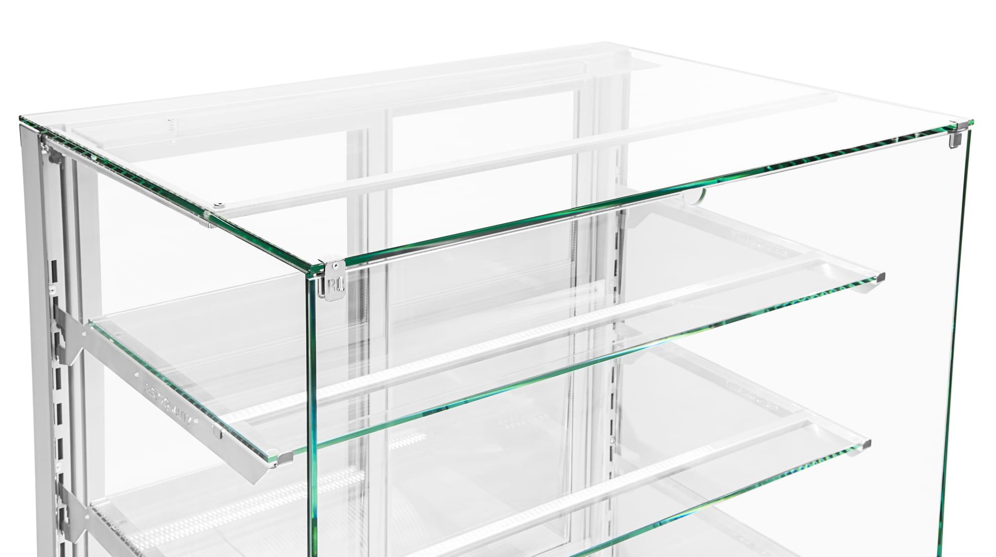 - Specjalnie zaprojektowana konstrukcja gwarantująca maksymalną widoczność produktów - bez spoin, czy sitodruku