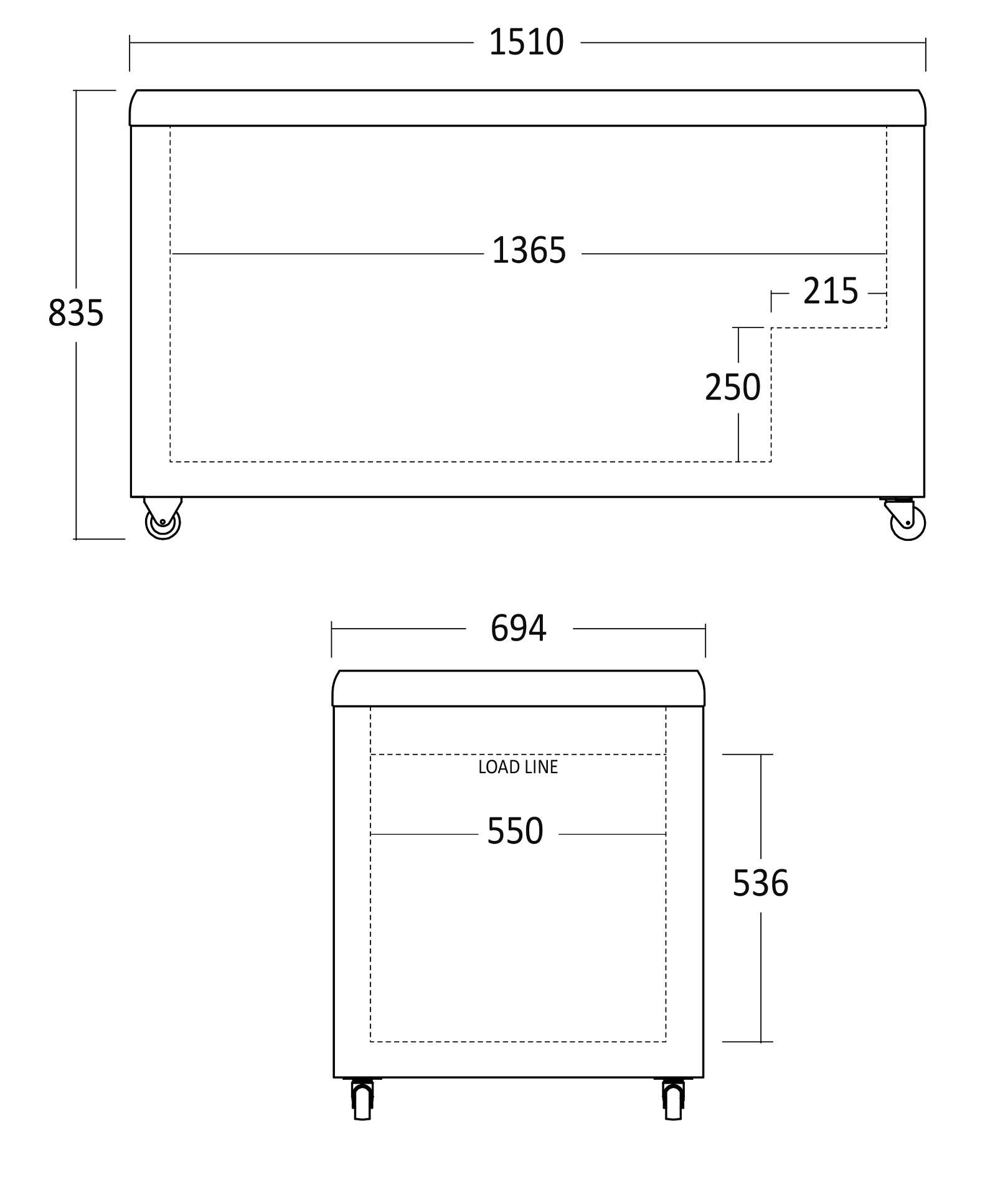 - Wymiary zewnętrzne [mm]: 1510x694x830