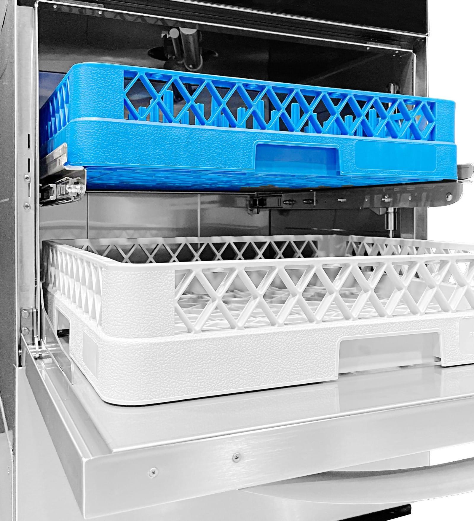 - Na górze i na dole znajdują komory się specjalnie zaprojektowane ramiona płucząco-myjące wykonane ze stali nierdzewnej zwiększające wydajność mycia.