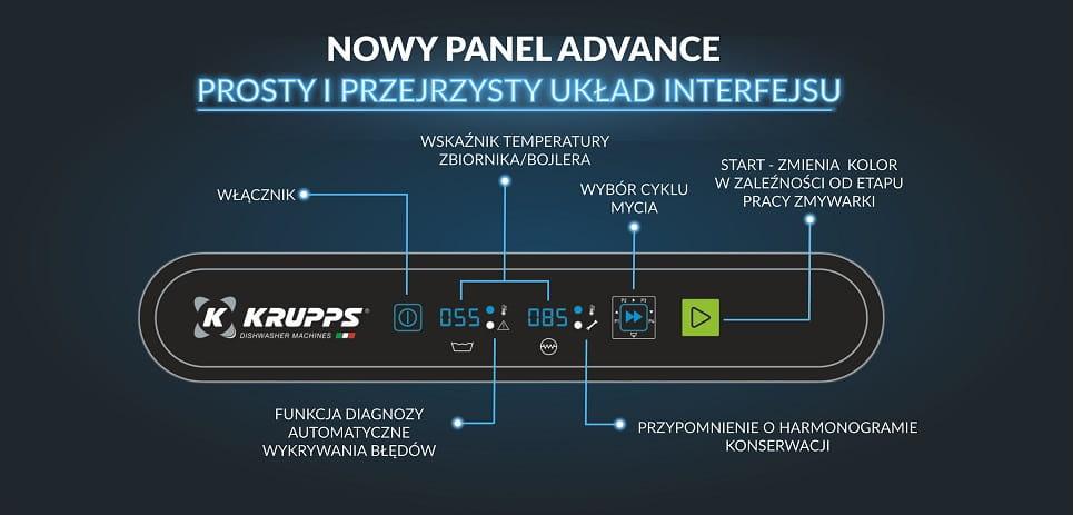 - Elektroniczny panel sterowania ADVANCE jest prawdziwym atutem linii CUBE, dzięki 4 cyklom mycia i automatycznemu spustowi wody (w modelach z zainstalowaną pompą spustową)