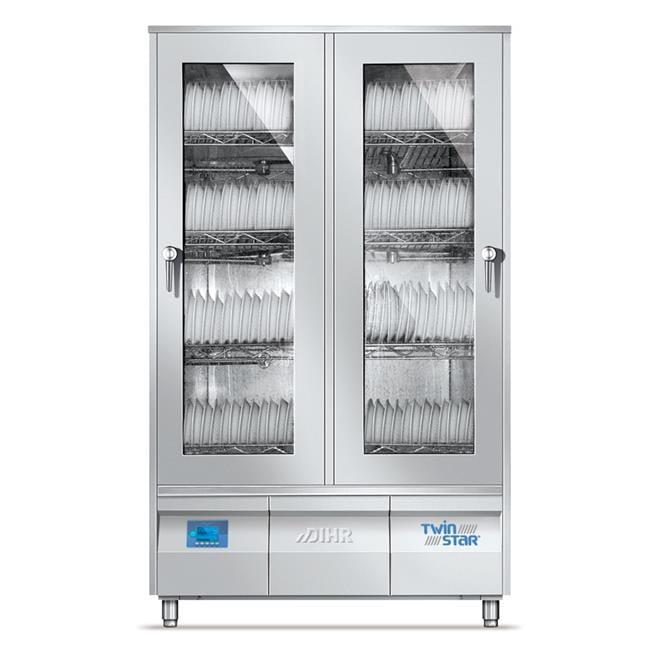 CICHA PRACASpecjalnie izolowana obudowa oraz drzwi z podwójnego szkła pozwoliły na redukcję poziomu hałasu aż do 53 dB.UNIWERSALNOŚĆTWIN STAR posiada aż 9 programów mycia, tak aby jak najlepiej dopasować się do potrzeb użytkownika. Niezależnie czy w danej chwili potrzebujemy lśniących kieliszków czy domywamy brudne garnki i tace.TWIN STAR rekomendowany jest do zarówno do restauracji (do 75 nakryć), szkół (do 120 nakryć), pizzerii (do 150 nakryć) a także dzięki systemowi dezynfekcji do szpitali i klinik.9 programów mycia gwarantuje dopasowanie się do oczekiwań każdego Klienta: namaczanie ECO standardowyintensywnydezynfekcja termiczna w 93°C przez 10 min mycia szkłamycia szkła ze schładzaniempodgrzewania talerzy samoczyszczący Długość programów od 75 do 140 min.ALL IN ONETWIN STAR jest niezależnie pracującym systemem. W wersji standardowej posiada wbudowane: - odzysk ciepła - zmiękczacz wody - aż 4 niezależne pompy wspomagające płukanie - pompę spustową - innowacyjny system suszenia „zimną mgłą” - 3 dozowniki: dla detergentu, nabłyszczacza oraz środka dezynfekującegoPRZYJAZNA DLA PORTFELAZmywarka TWIN STAR pozwala nam na zaoszczędzenie nie tylko miejsca ale także kosztów.W porównaniu do tradycyjnego systemu zmywania zużywamy do 50% mniej wody, 87% mniej detergentów, 40% mniej energii i aż 90% mniej nakładów pracy obsługiIlość programów mycia: 9Długość programów: od 75 do 140 minPojemność bojlera: 18 lMoc bojlera: 6 kWIlość/moc pomp myjących: 4 szt./520 WDozownik detergentu Dozownik nabłyszczacza Dozownik płynu dezynfekcyjnegoPompa odpływowaAutomatyczny zmiękczaczKondensator pary wystem suszeniaMoc podłączeniowa: 6,52 kWNapięcie: 400 V/3 N/50 HzWymagane ciśnienie wody zasilającej: 200-400 kPa * gwarancja zgodnie z warunkami producenta